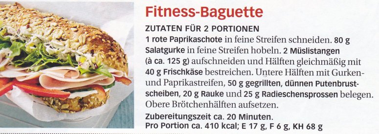 Das ist lecker - aber ich nehme statt Baguette lieber 2 Scheiben Vollkornbrot |