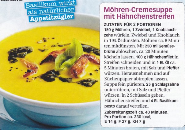 | Die Möhrencremesuppe schmeckt auch lecker ohne die