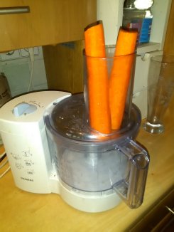 | 1. Die Möhren schälen und in der Küchenmaschine in Scheiben hobeln. | |||||